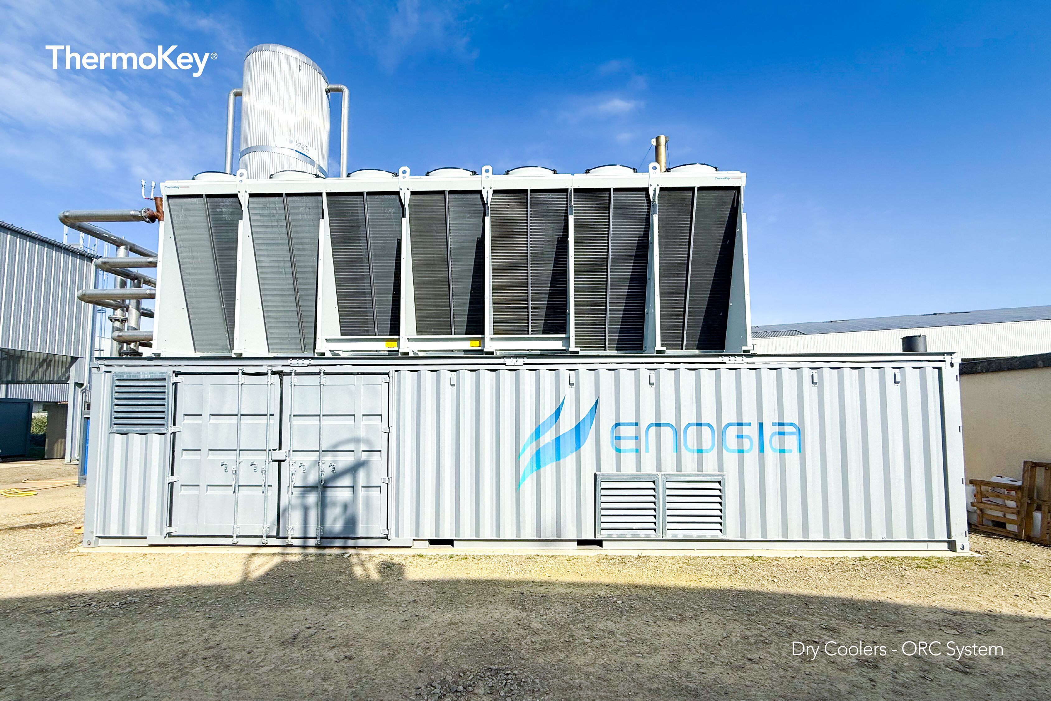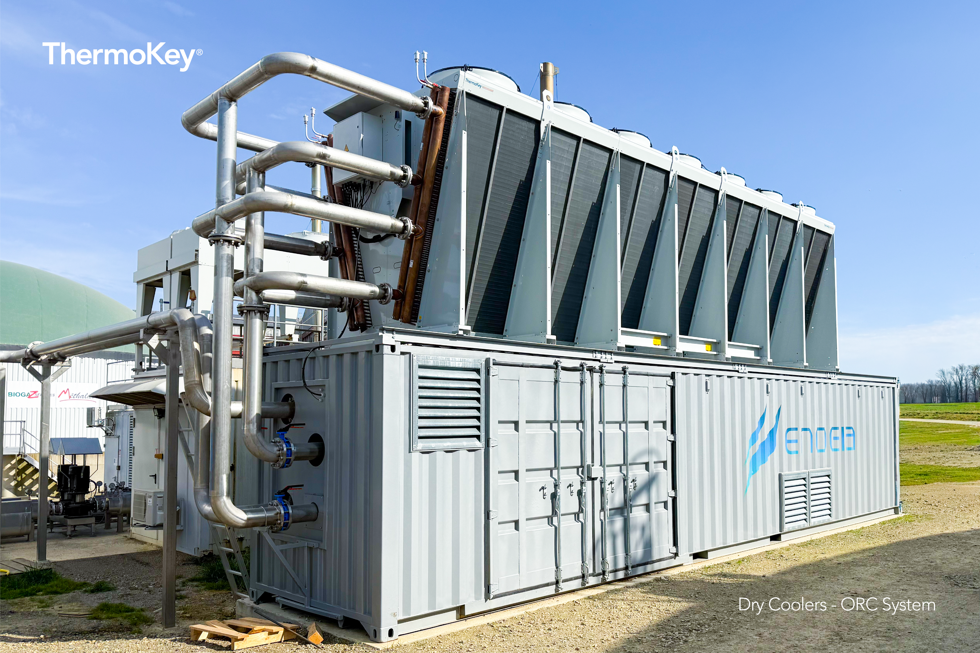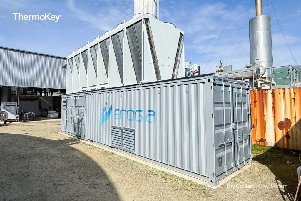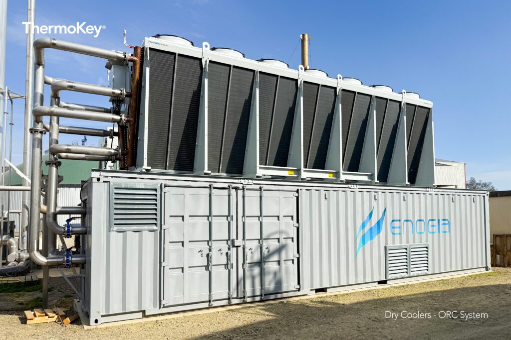 In the context of growing needs for sustainable energy solutions, ThermoKey collaborated with Enogia, a French company specialized in the design of micro-turbomachinery and ORC (Organic Rankine Cycle) systems, to implement a dry cooling solution to enhance heat recovery efficiency in a biogas cogeneration plant.